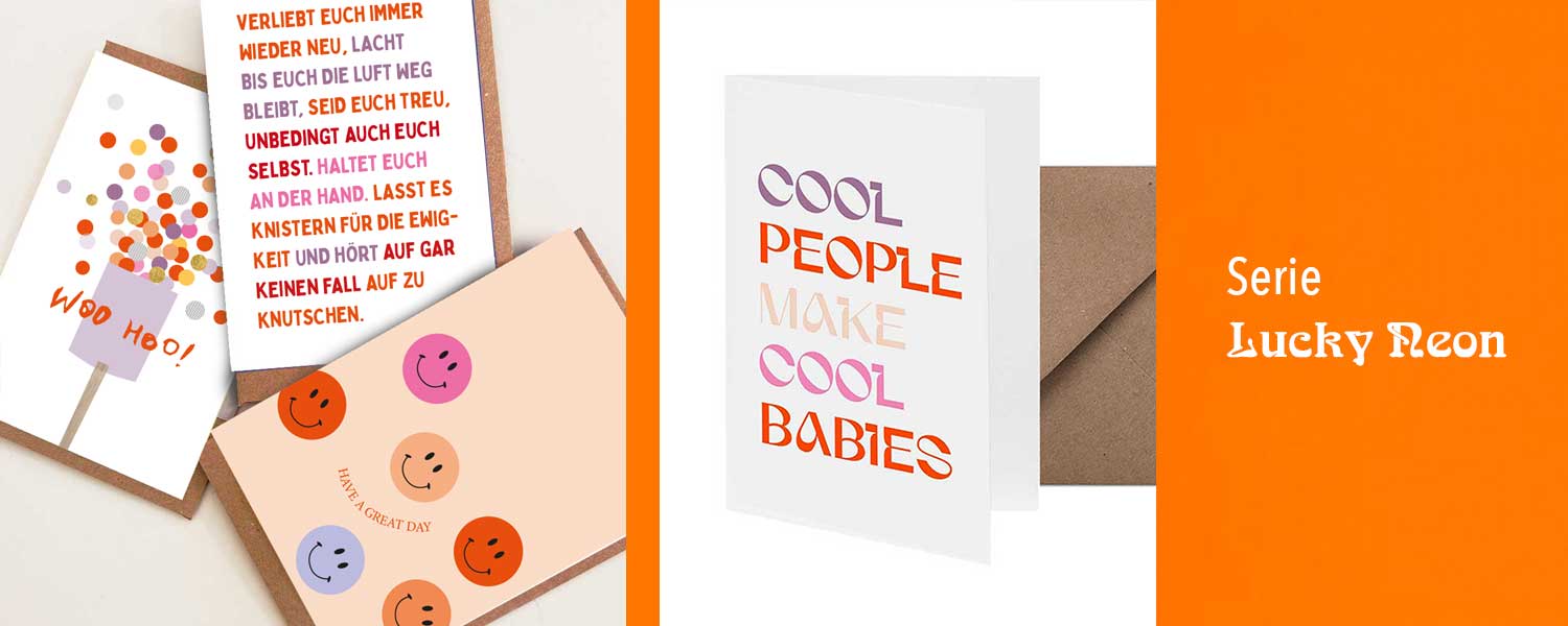 Klappkarten mit Sonderfarbe Neon Pantone 805Charmantes Sonderformat: 90 x 120 mm (geschlossen)mit...