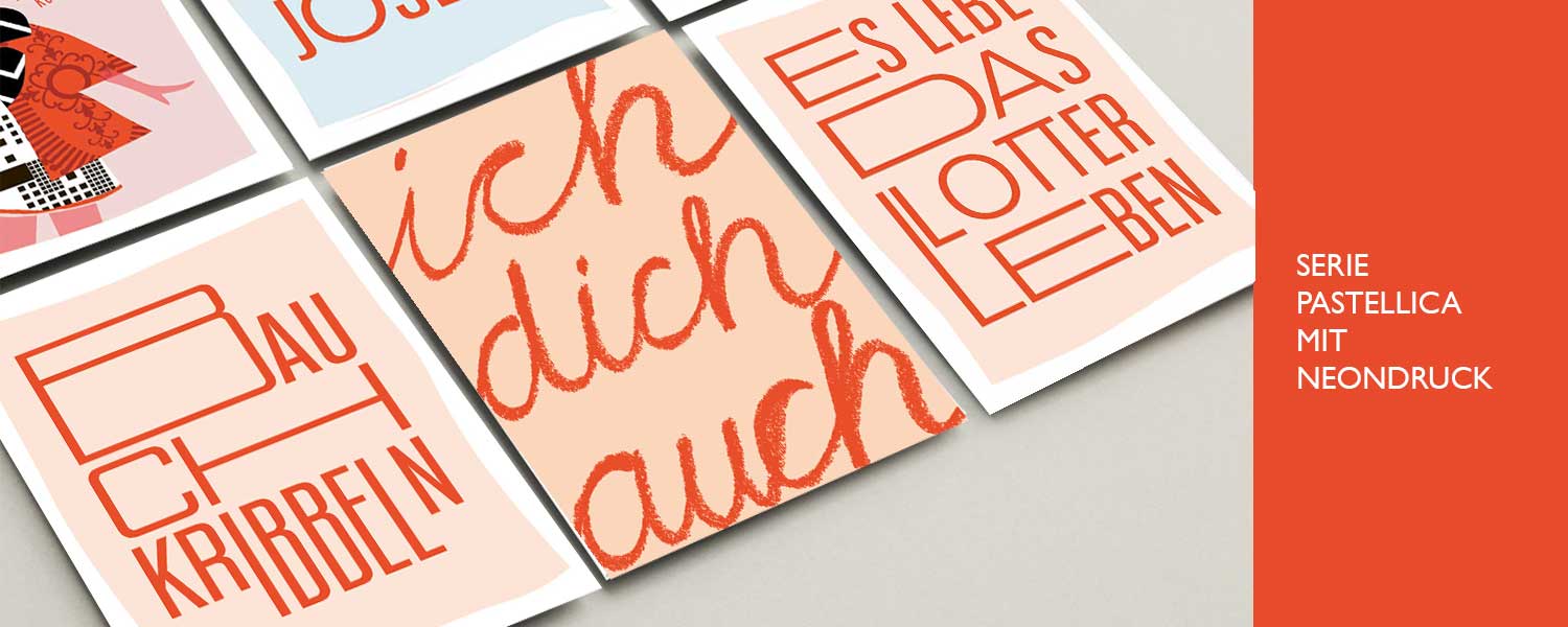 A6 Postkarten gedruckt auf feinem Gmundkarton, 350g mit Pantone Neondruck