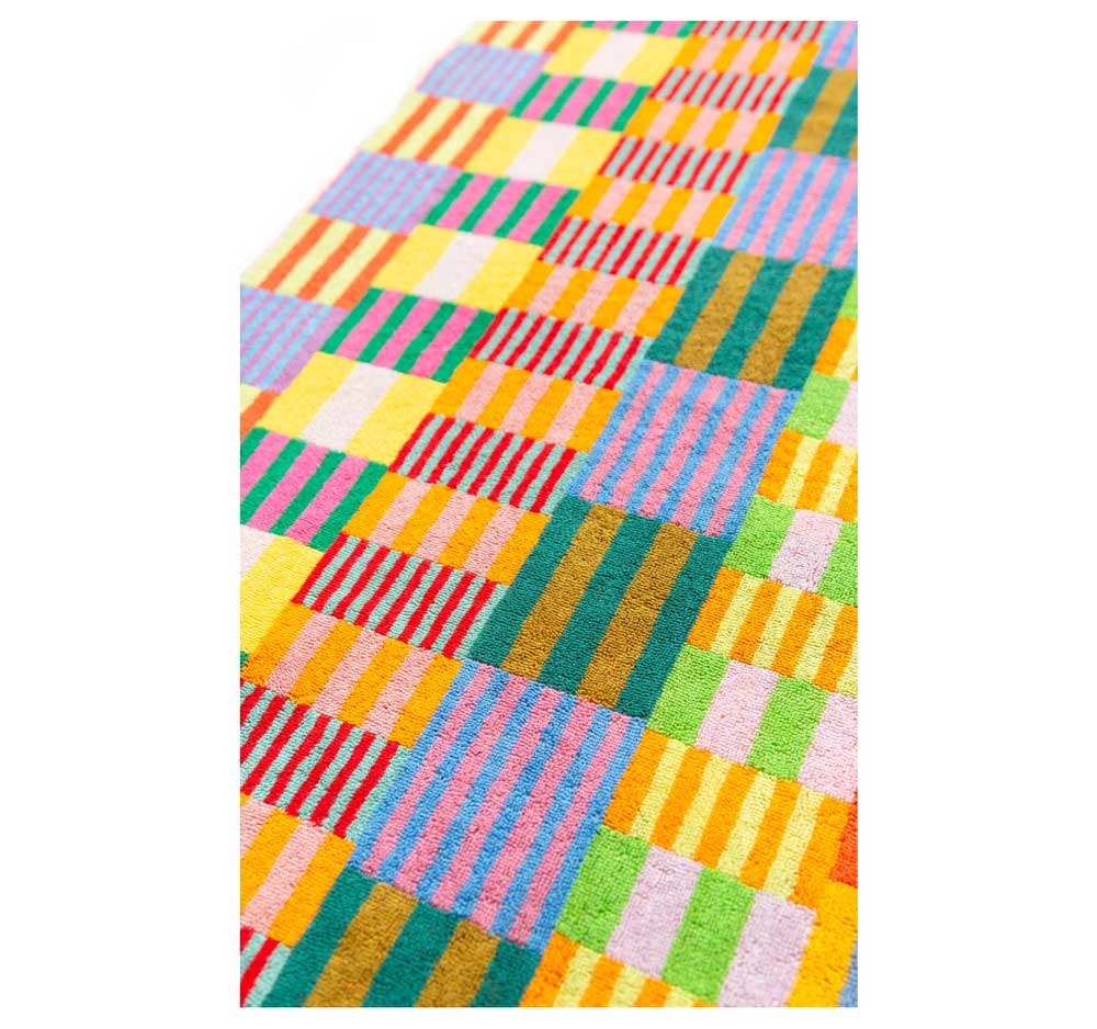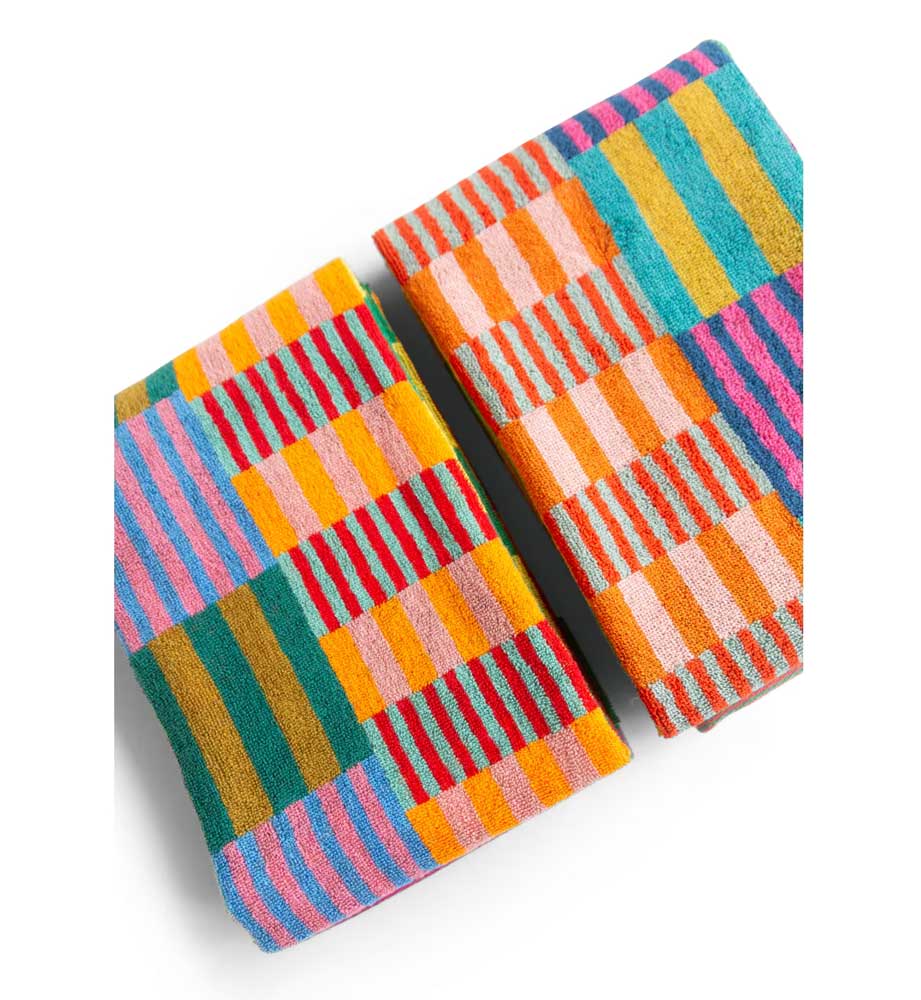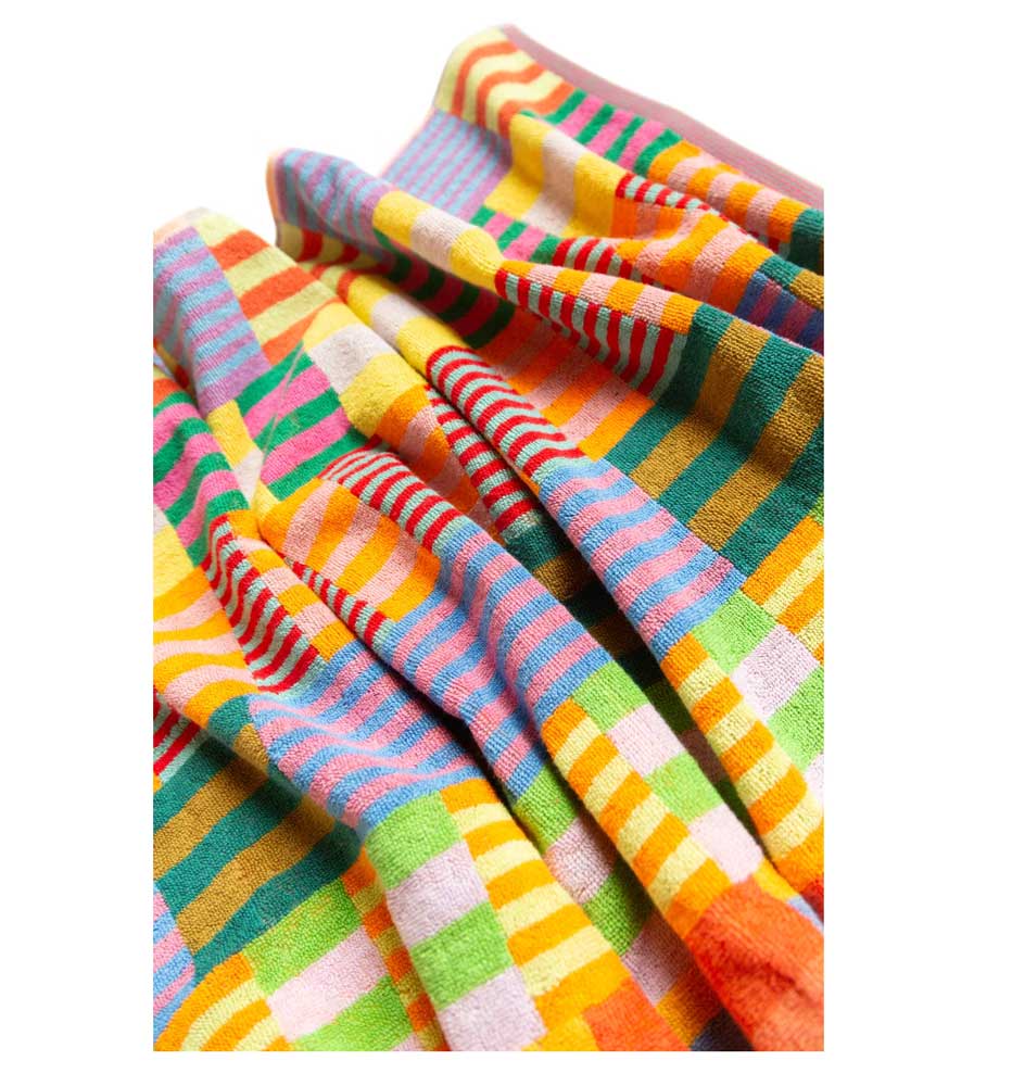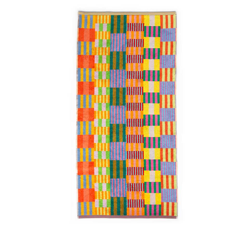 Badehandtuch von Foekje Fleur, mit frischer Farbkombination und modernem Design gefertigt aus Garn-Überproduktionen der Textilindustrie. Limitierte Edition.