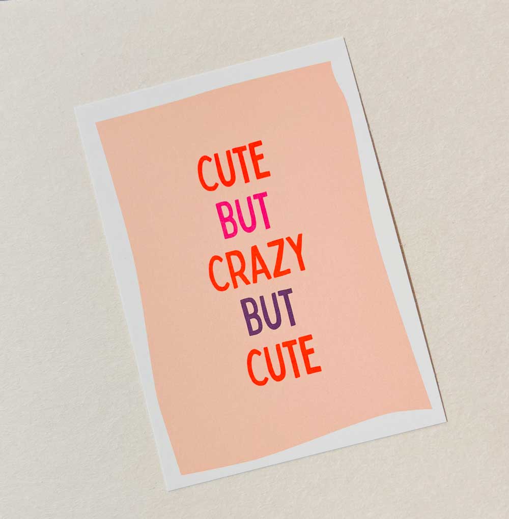 Cute, but Crazy, but Cute - Postkarte mit Neondruck