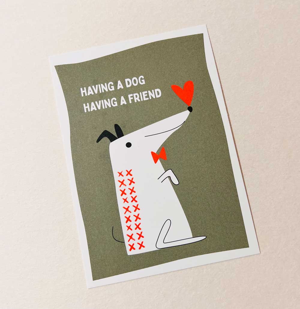 Dog Friend - Postkarte mit Neondruck