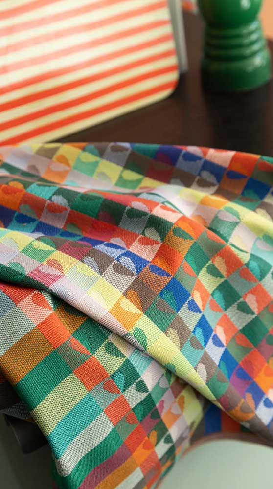 Colorful home textiles made of industry leftovers! When factories dye yarns to weave textiles, they make some extra—just in case—but they often go unused. The Odds & Ends textiles are designed to get the most out of these remainders, creating unexpected color combinations.
