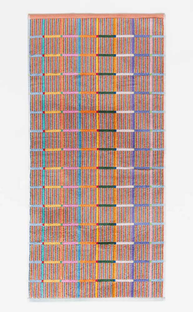 Geschirrhandtuch von Foekje Fleur, mit außergewöhnlichen Farbkombinationen und frischem Design gefertigt aus Garn-Überproduktionen der Textilindustrie. Limitierte Edition. Wenn die Garne verbraucht sind, wird die Edition so nicht mehr nachproduziert.