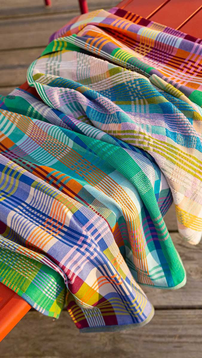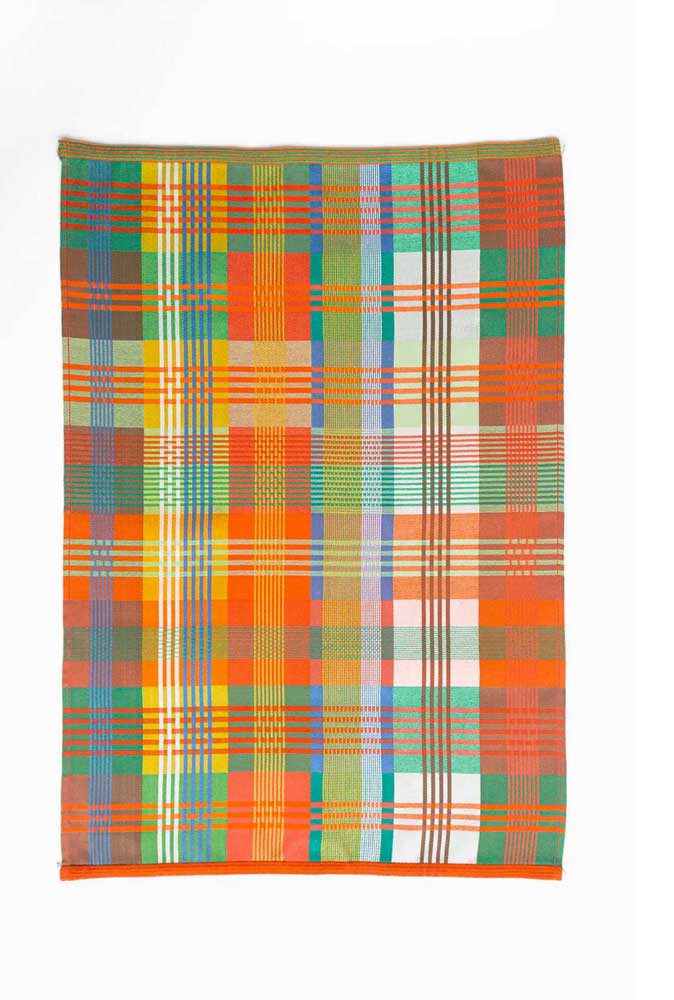 Geschirrhandtuch von Foekje Fleur, mit außergewöhnlichen Farbkombinationen und frischem Design gefertigt aus Garn-Überproduktionen der Textilindustrie. Limitierte Edition. Wenn die Garne verbraucht sind, wird die Edition so nicht mehr nachproduziert.