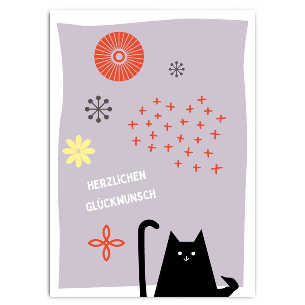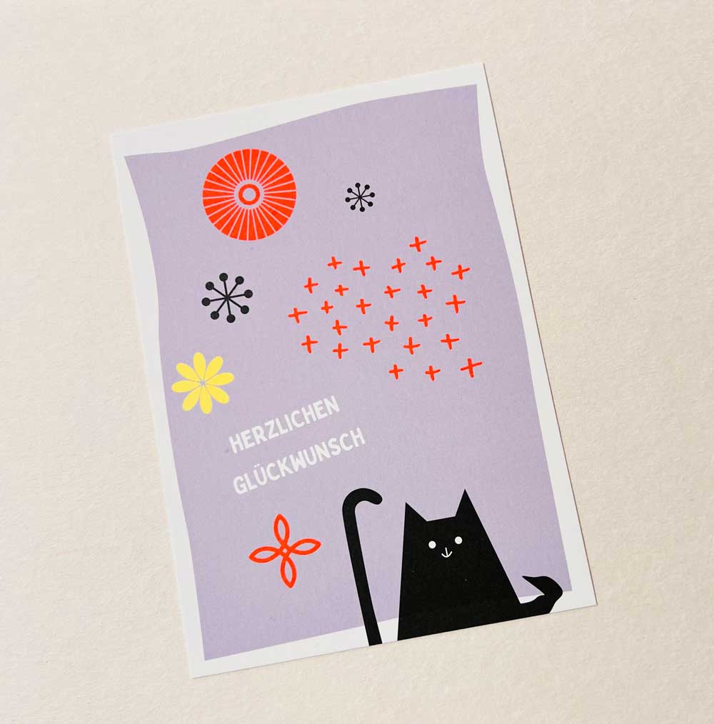 Katze - Herzlichen Glückwunsch - Postkarte mit Neondruck