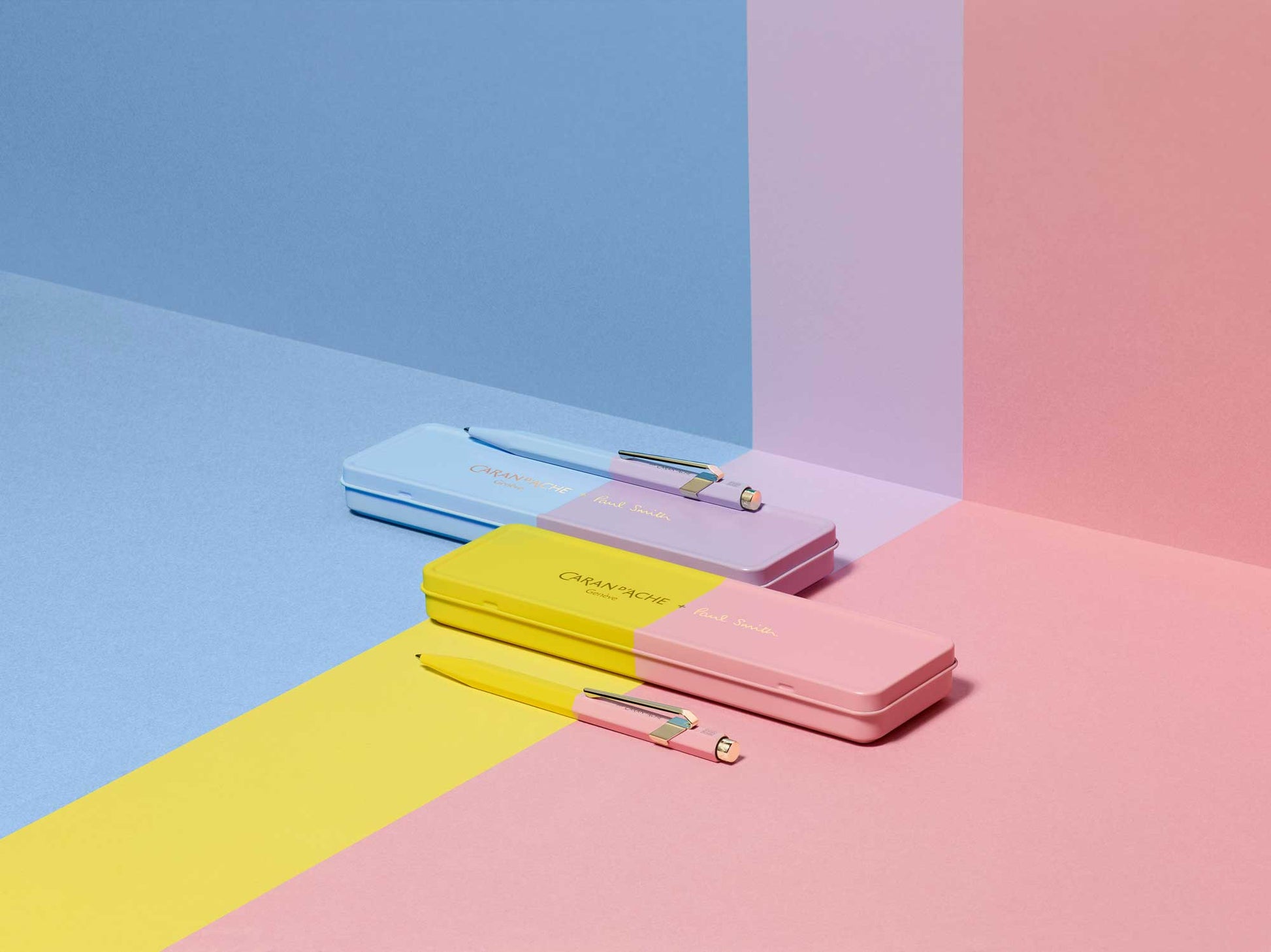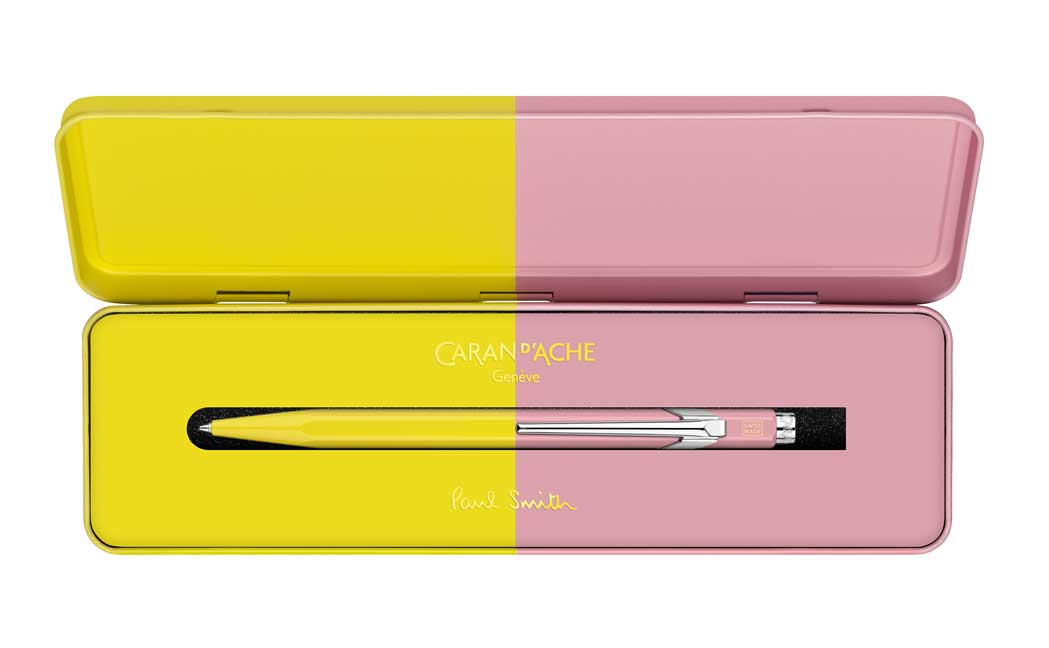 1 Stück Caran d'Ache Kugelschreiber 849 Chartreuse-Rose, Likörgelb-Rosé mit Metallbox