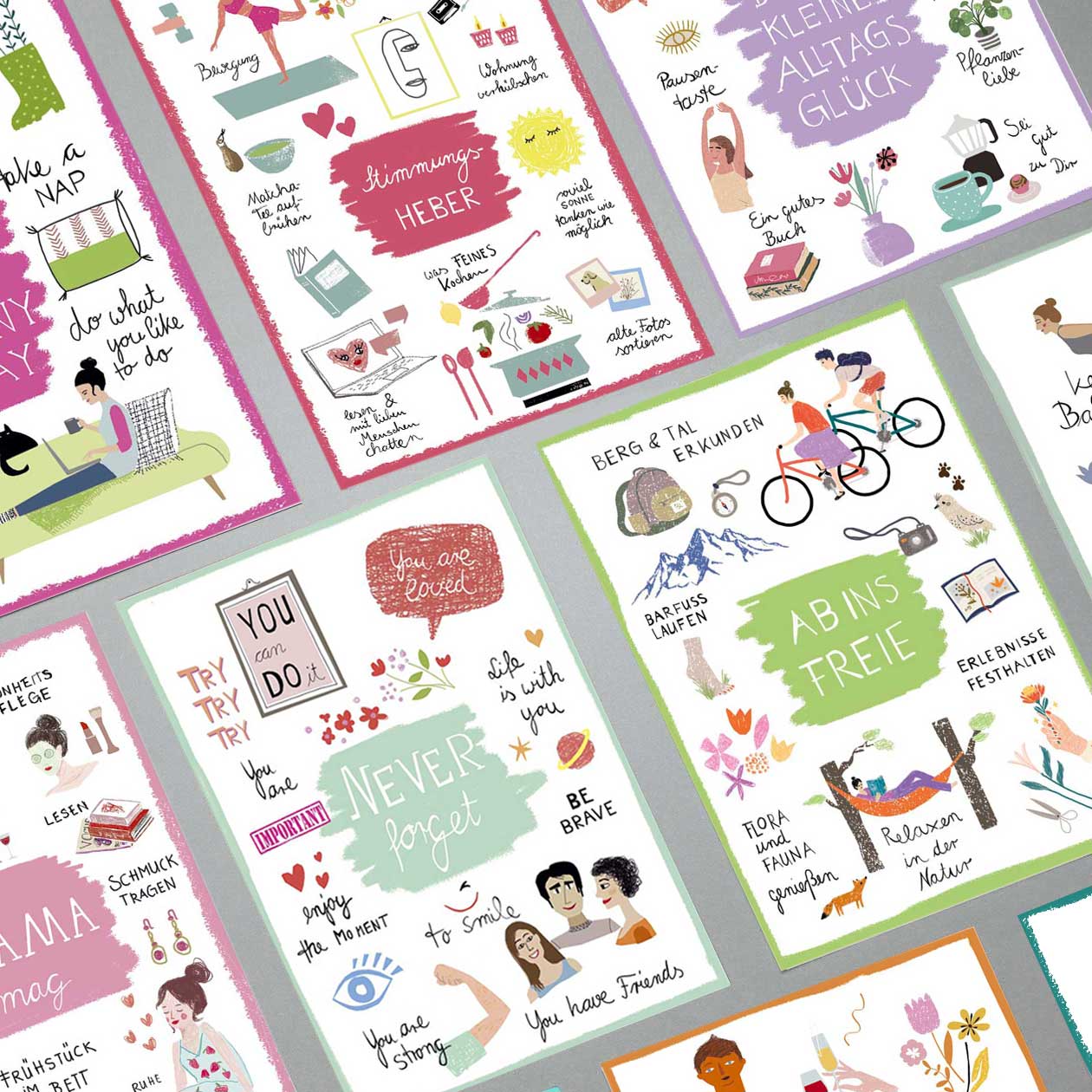 Postkarten mit unterhaltsamen Illustrationen, Format DIN A 6